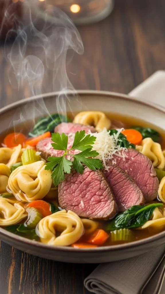 This soup combines tender tortellini with savory beef and vegetables. Perfect for hearty winter cravings.