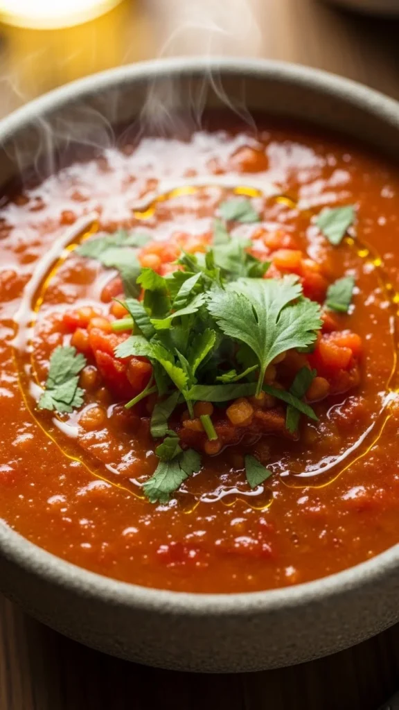 This soup blends tomatoes and tender lentils into a thick, spiced mixture that warms instantly. It is full of comforting depth with a hint of brightness from the tomatoes. Great for chilly evenings when you want a hearty plant-based meal.